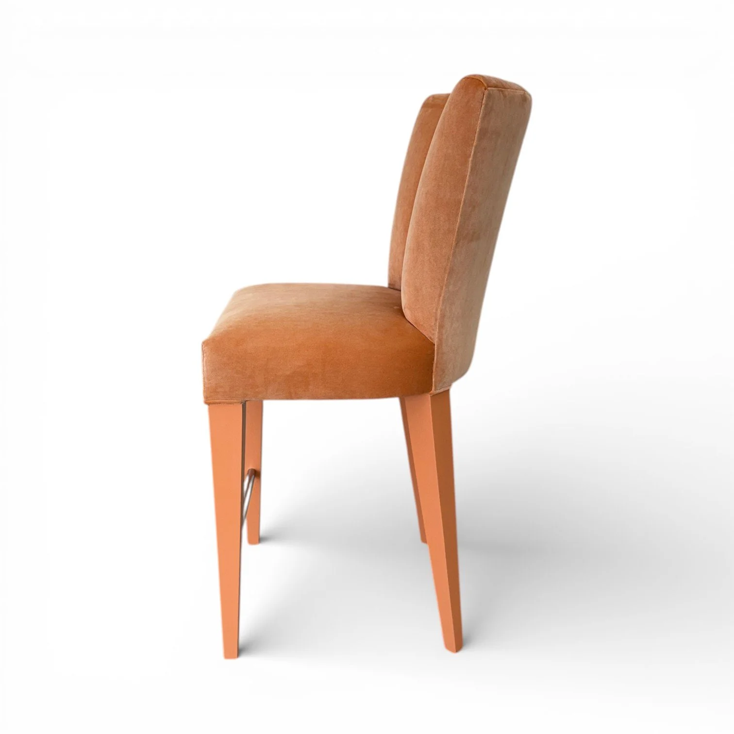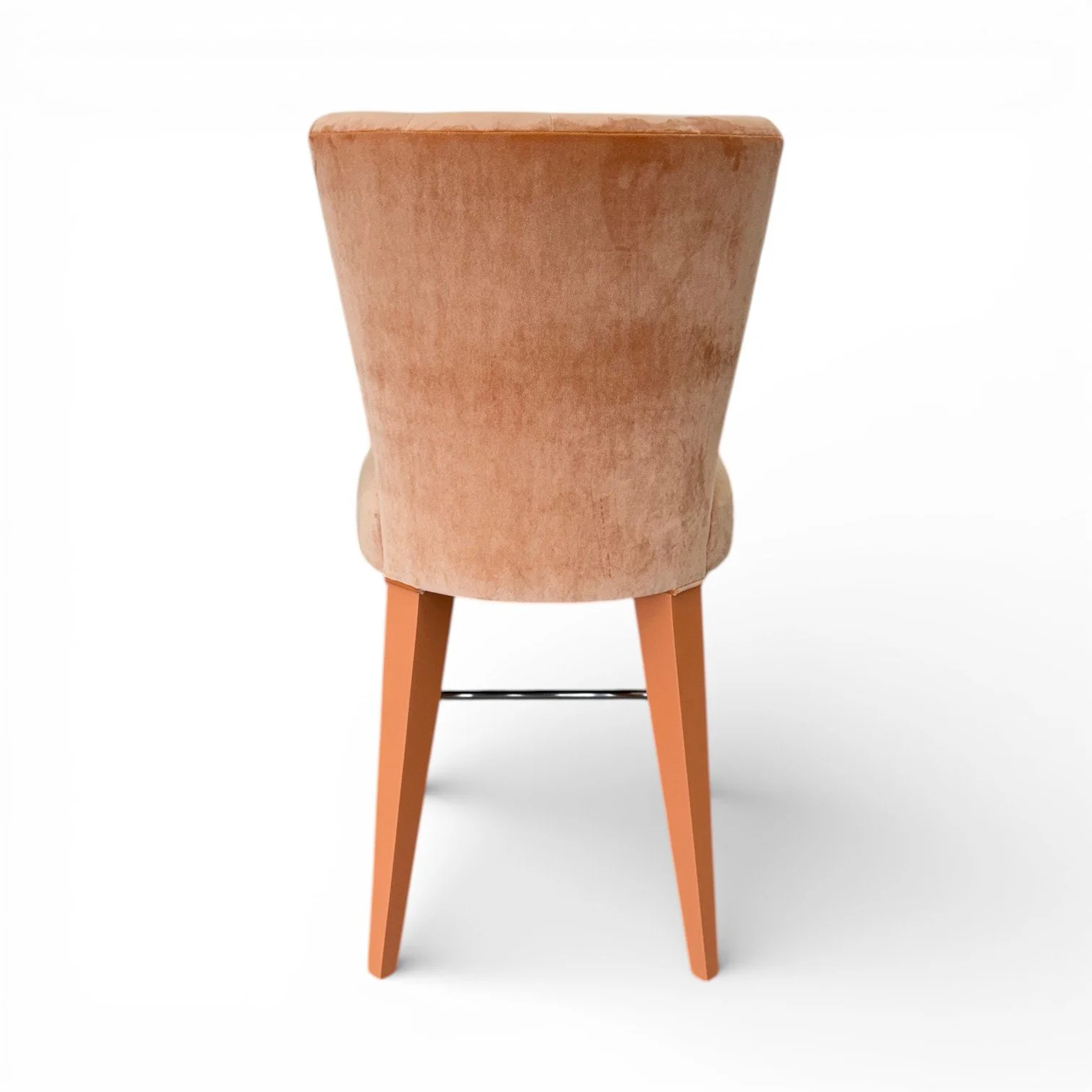 This chair combines timeless craftsmanship with a clean, transitional look. The solid wood frame features straight, squared legs with a warm stained finish, giving it a sturdy and grounded feel. Its fully upholstered seat and back are finished with double-row nailhead trim for a tailored, refined edge. The gently curved seat offers extra comfort and a subtle custom detail, making it a perfect blend of traditional and modern style—ideal for dining rooms, offices, or accent seating.